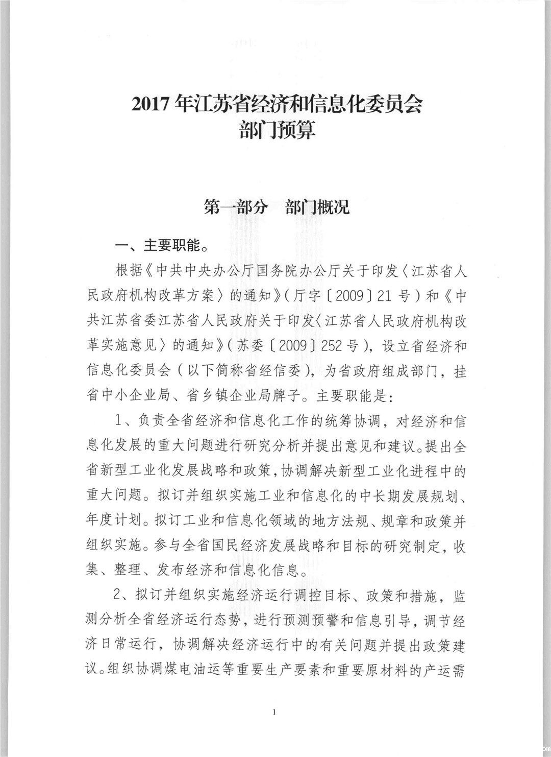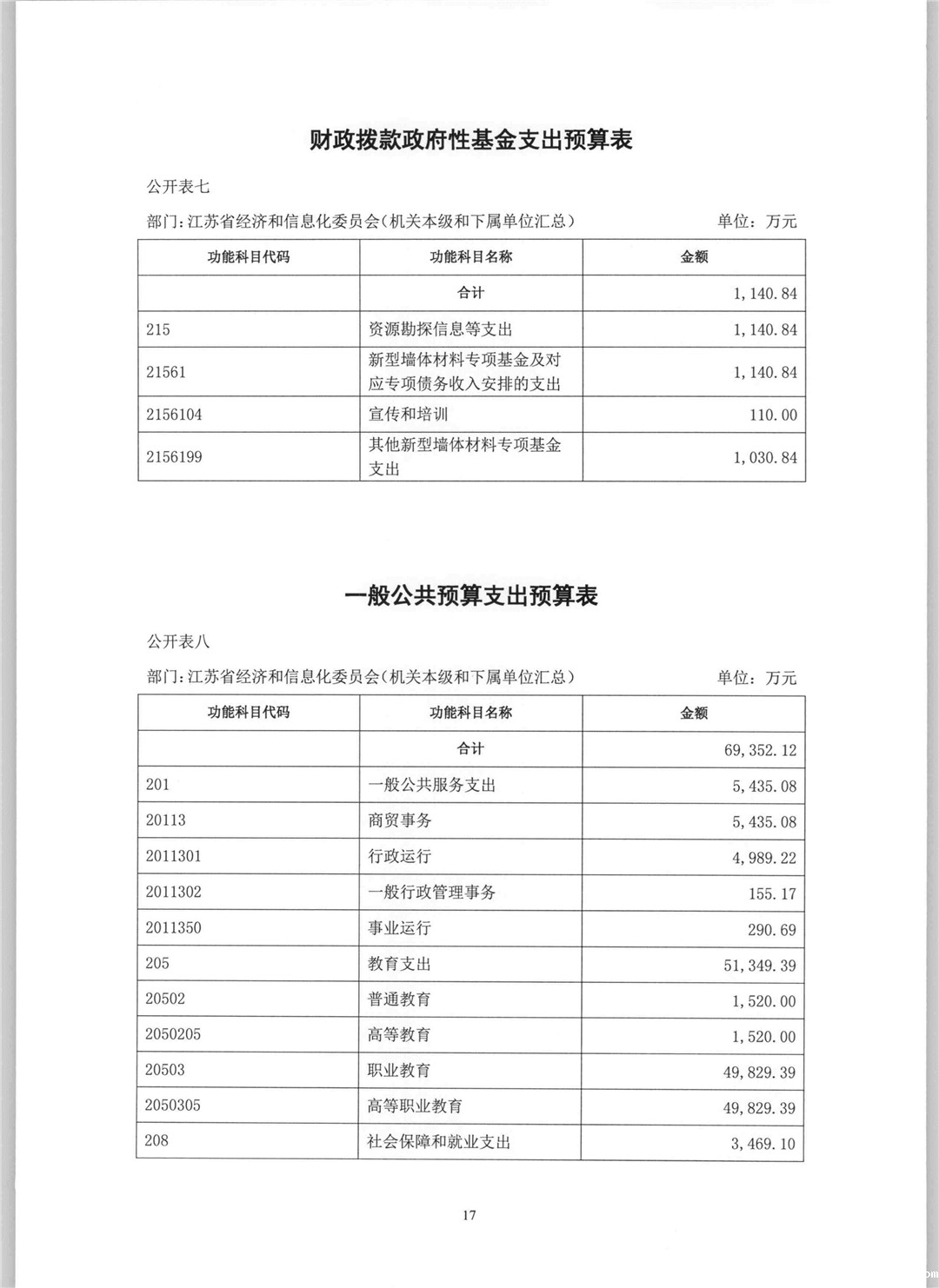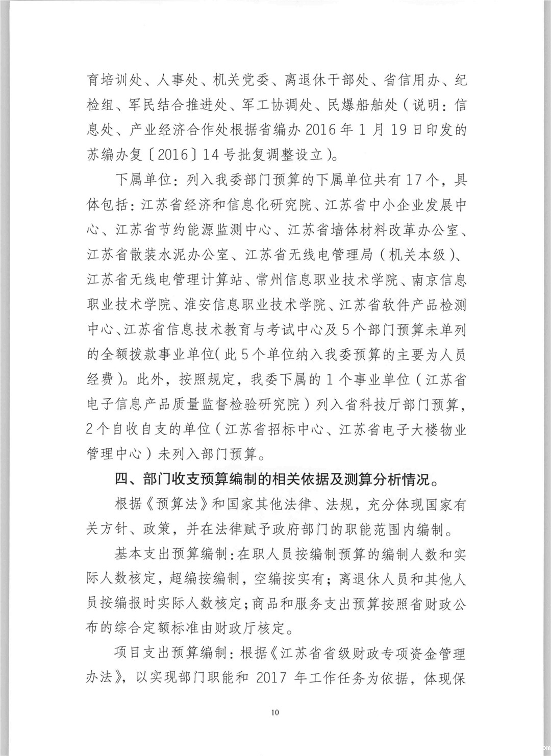 2017年江苏省经济和信息化委员会部门预算