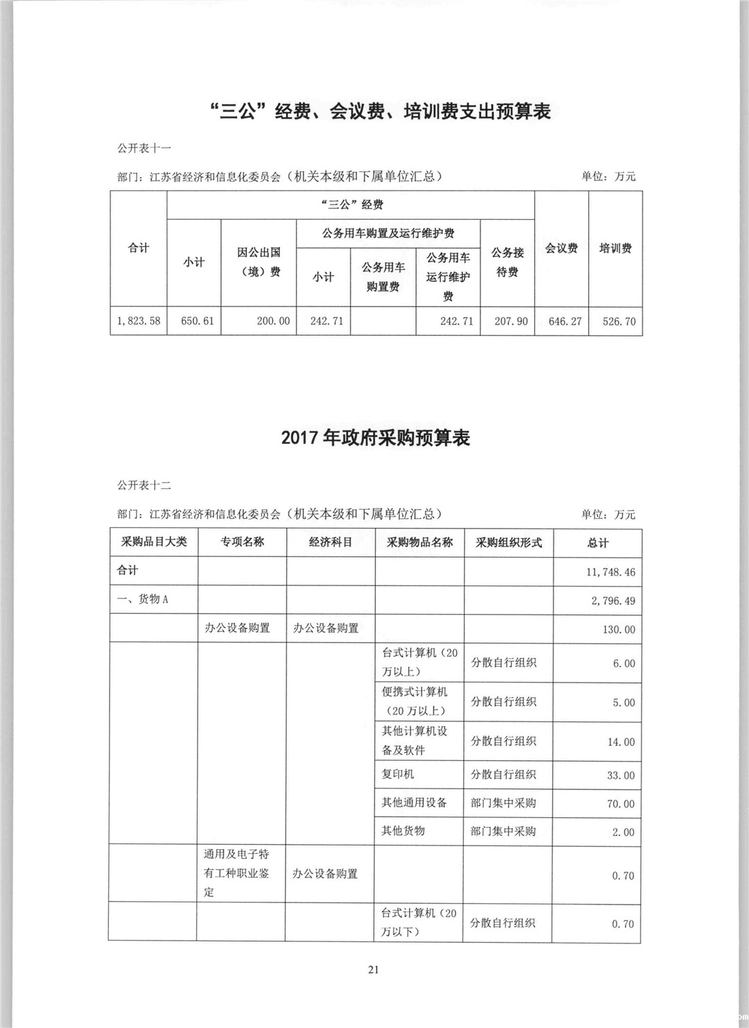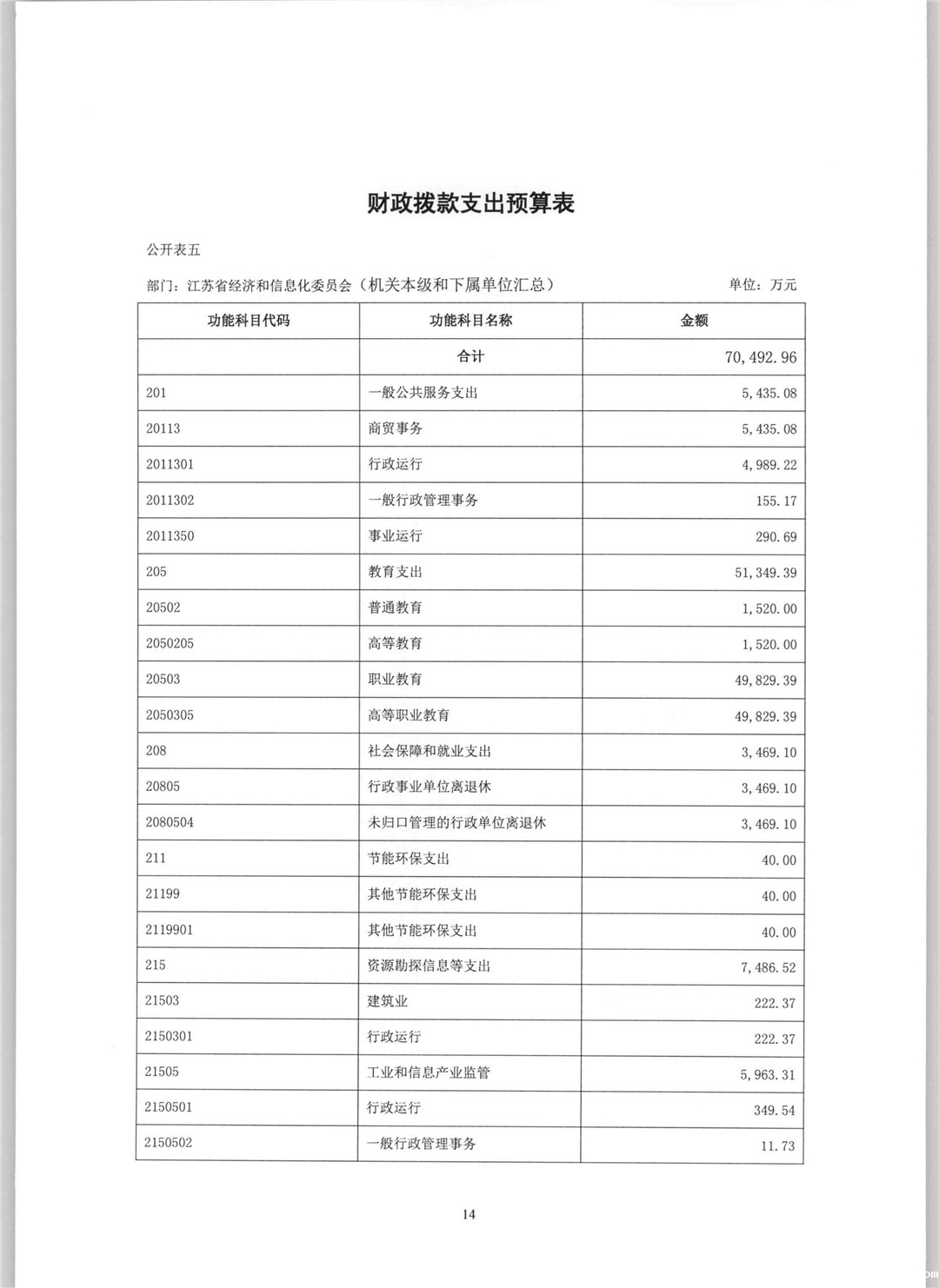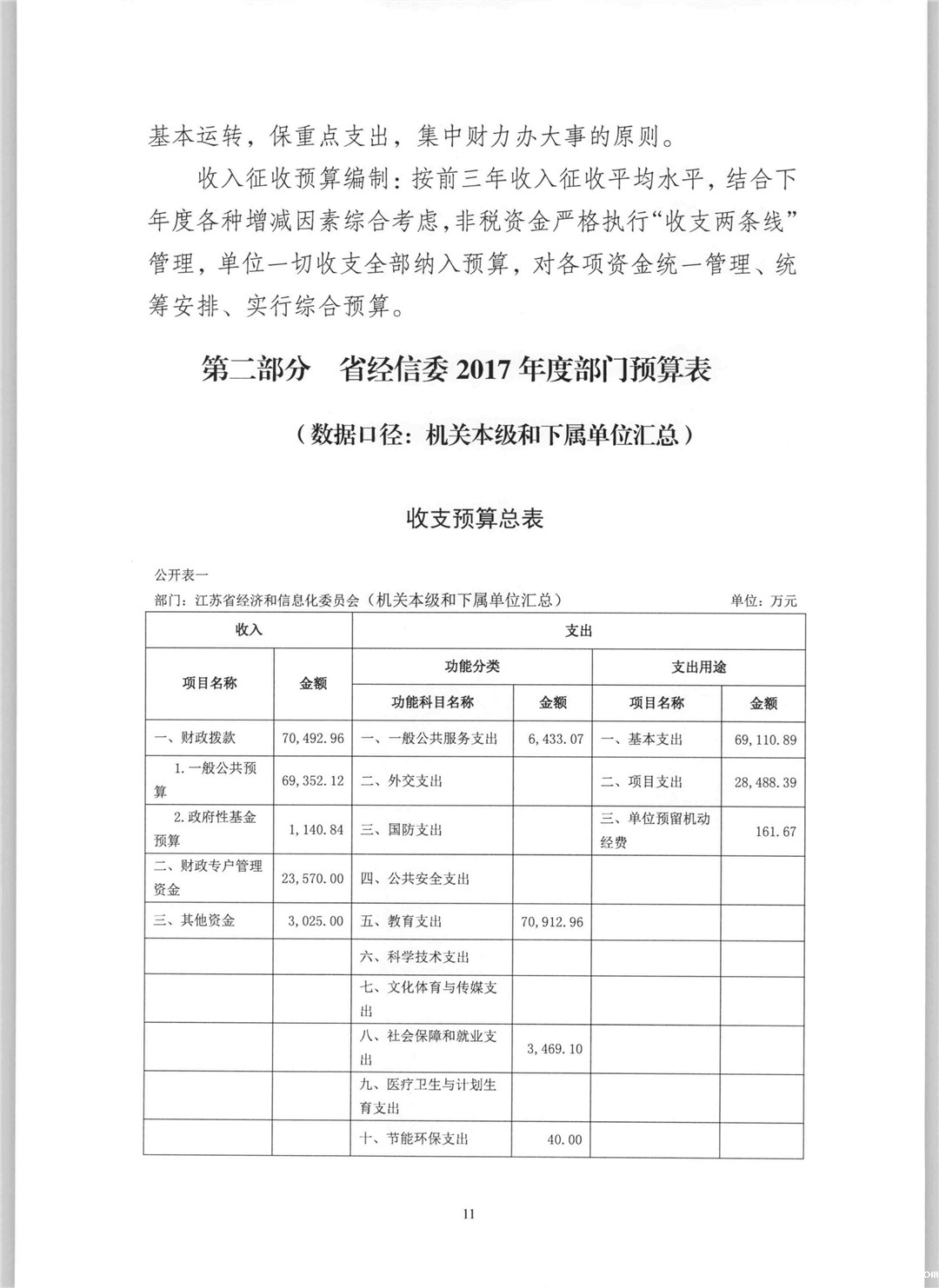 2017年江苏省经济和信息化委员会部门预算