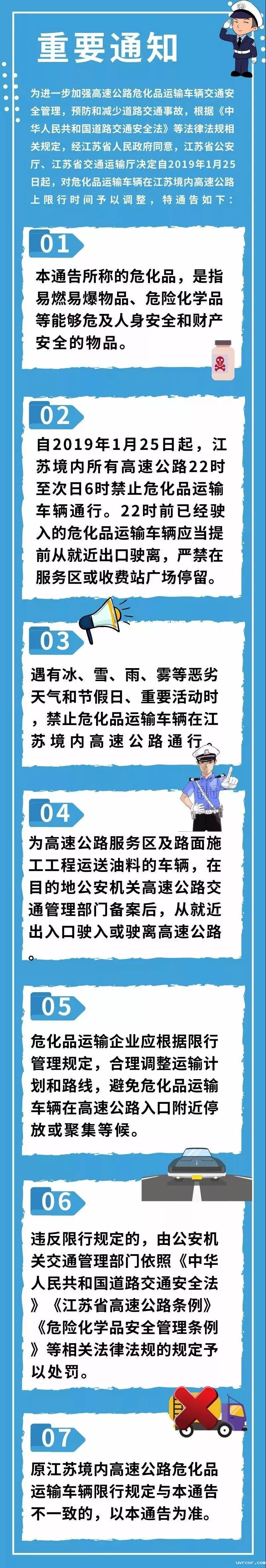关于调整江苏境内高速公路危化品运输车辆限行时间的通告