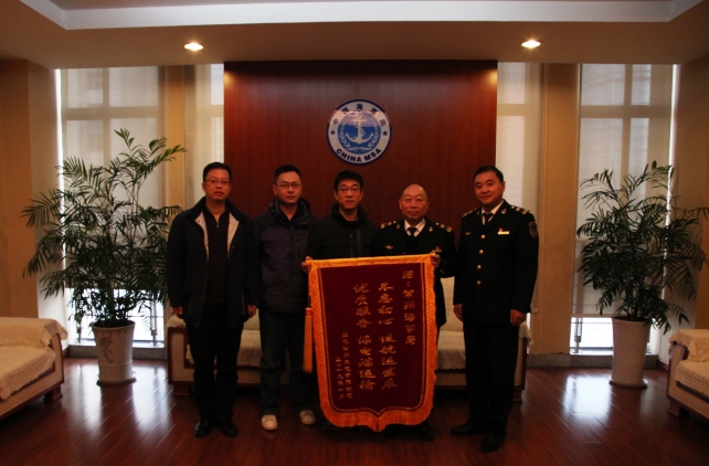 2019年1月25日上午,常州港国电常州发电有限公司领导一行3人来到常州海事局,将一面写有“优质服务保电煤运输、不忘初心促航运发展”的锦旗送到潘守成副局长手中,对常州海事局一年来全力保障电煤运输的服务举措表示由衷的感谢,并高度赞扬了“苏冀电煤航线”品牌给企业带来的实惠。