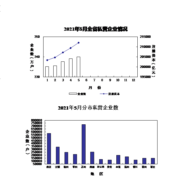 三、私营个体经济新增注册资本不断扩大。1-5月,全省私营个体经济新增注册资本12955.9亿元,同比增长27.6%;其中,私营企业新增注册资本12206.1亿元,同比增长27.2%,户均注册资本达521.0万元;个体工商户新增注册资金749.8亿元,同比增长34.3%。截至5月底,全省私营企业和个体工商户实有注册资本总额达221146.5亿元,比去年底增长5.6%;其中,私营企业实有注册资本211992.9亿元,比去年底增长5.6%;个体工商户注册资金9153.6亿元,比去年底增长5.1%。